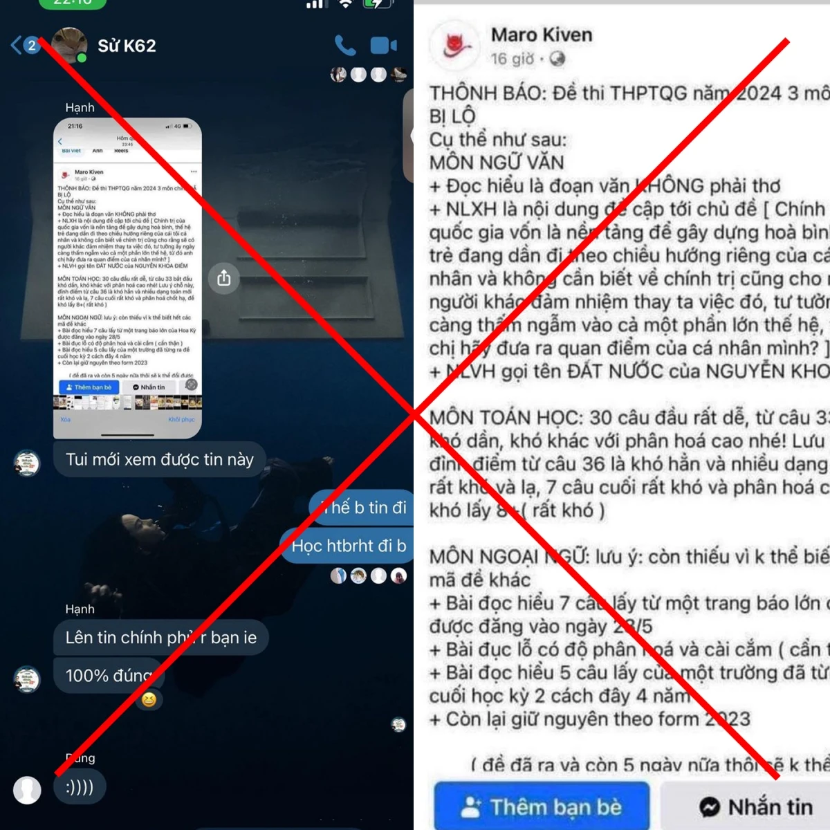 Để tránh gây hoang mang dư luận, làm ảnh hưởng đến tâm lý của các thí sinh tham dự kỳ thi tốt nghiệp THPT năm 2024, Bộ Giáo dục và Đào tạo đề nghị người dân không chia sẻ những thông tin sai sự thật nêu trên.