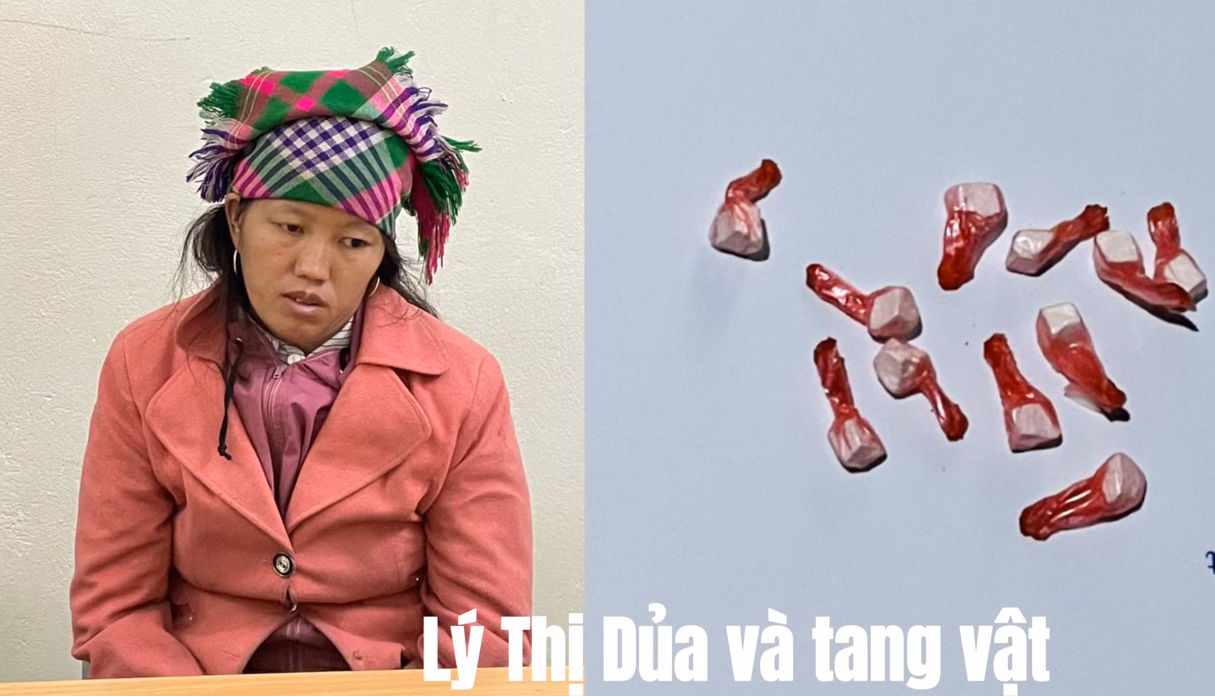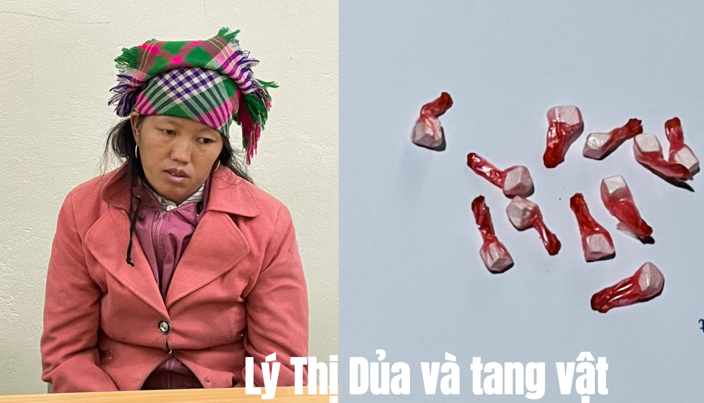 Trước đó, ngày 15/3/2023, Công an xã Cốc Mỳ bắt quả tang đối tượng Lý Thị Dủa (ảnh trên), sinh năm 1982, trú tại thôn Tả Câu Liềng đang tàng trữ 11 gói bột khô màu trắng trong túi vải đeo trên người. Lý Thị Dủa khai nhận chất bột khô trong 11 túi nilon này là hê rô in.