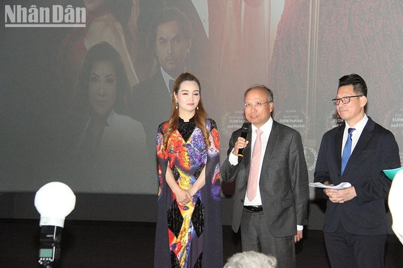 Đại sứ Việt Nam tại Pháp Đinh Toàn Thắng đánh giá cao nỗ lực của đoàn làm phim và ê-kíp tại Pháp, tổ chức buổi chiếu phim phục vụ kiều bào. (Ảnh: KHẢI HOÀN)