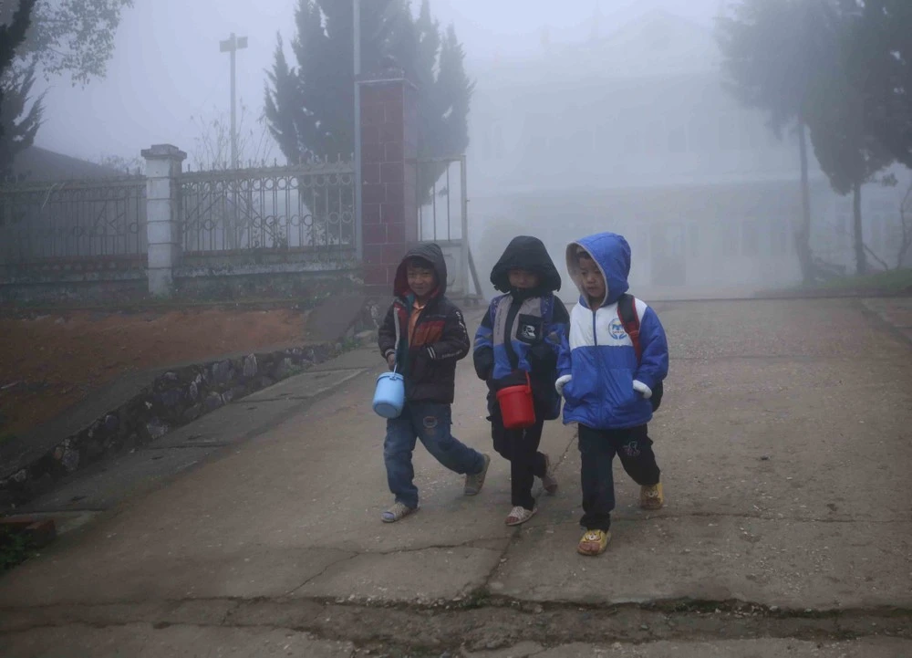 Nhiều học sinh do được tuyên truyền về đợt rét đậm, rét hại nên đã chủ động mặc áo ấm để chống chọi với giá rét khi đến trường.