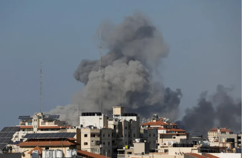 Khói bốc lên cao sau khi xảy ra cuộc tấn công của Israel ở Dải Gaza ngày 12/10/2023.
