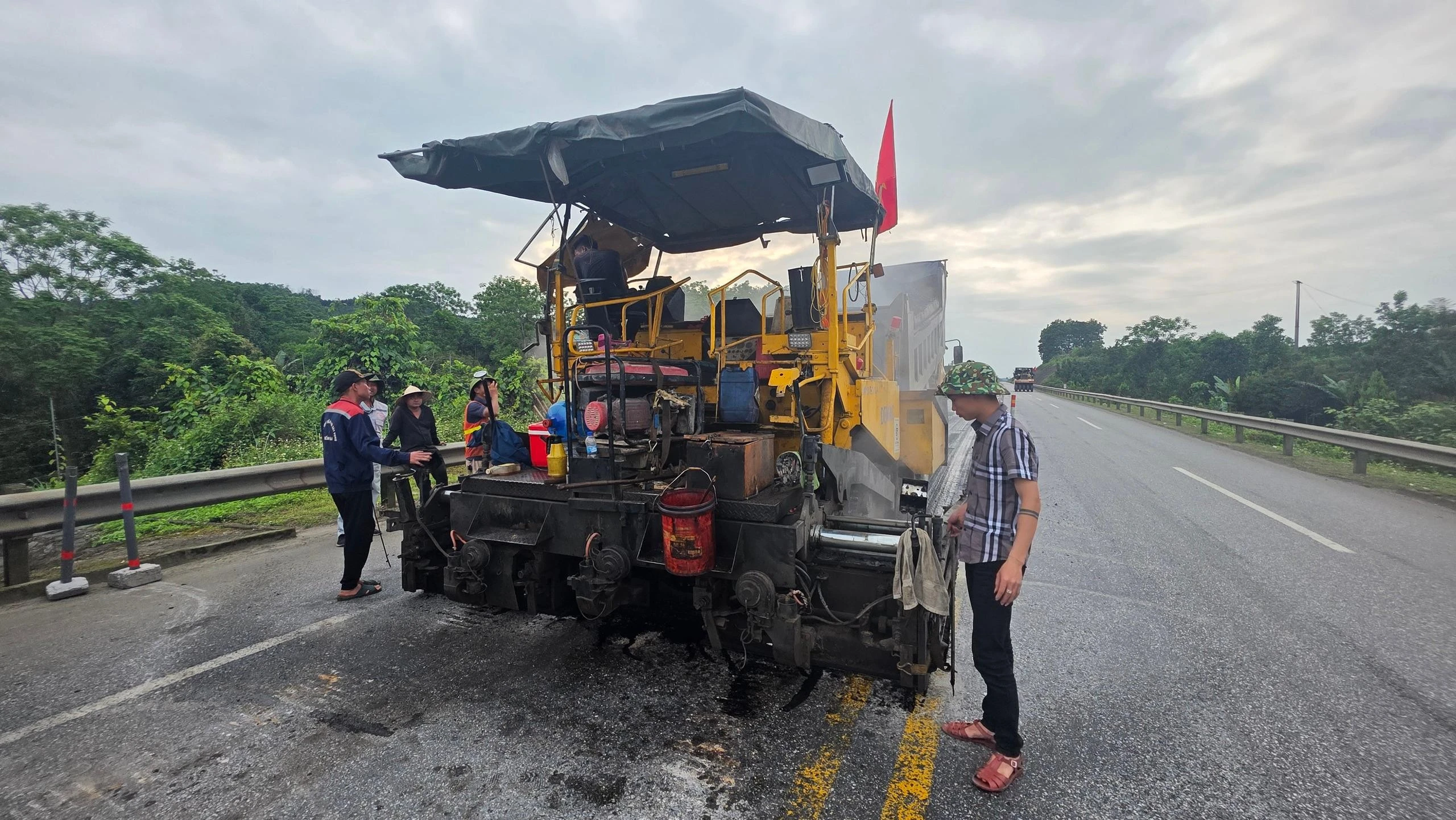 Dưới thời tiết 35 độ C, đơn vị thi công chịu trách nhiệm tổ chức giao thông; lắp đặt biển báo, thiết bị cảnh báo; phân làn, phân luồng tại khu vực thi công. Các đoạn tuyến sửa chữa gồm đoạn: Km 123+00 - Km 244+155; đoạn Km 93+000 - Km 106+206; đoạn Km 123+066 - Km 136+470; đoạn Km 142+000 - Km 160+400; đoạn Km 171+000 - Km 190+450; đoạn Km 191+200 - Km 217+000; đoạn Km 229+100 - Km 243+100; đoạn Km 0+00 - Km 123+080; đoạn Km 123+080 -Km 244+150.
