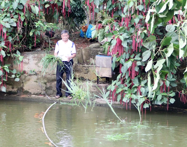Năm 2014, ông Nhiên tham gia nuôi cá bỗng thương phẩm. Theo ước tính, nếu xuất bán toàn bộ số cá nuôi, gia đình sẽ có nguồn thu 300 triệu đồng. Cùng với cá bỗng, ông Nhiên còn thả xen cá trắm, cá chép. Mỗi năm, trừ chi phí, gia đình thu về hơn 100 triệu đồng.