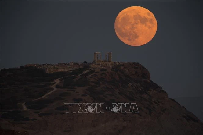 Hiện tượng siêu trăng nhìn từ Cape Sounion, Hy Lạp tối 30/8.