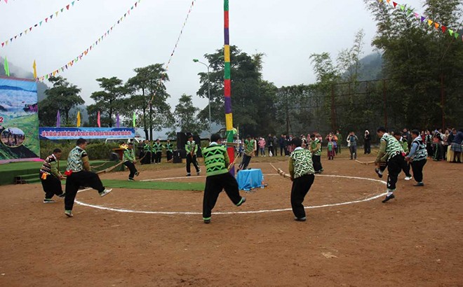 Sau phần lễ, phần hội diễn ra sôi động với các tiết mục văn nghệ mang đậm bản sắc văn hóa dân tộc Mông và các môn thể theo truyền thống như: kéo co, đẩy gậy, đánh quay, bắn nỏ, lẩy pao, đánh cầu lông gà và các trò chơi dân gian khác của dân tộc Mông.