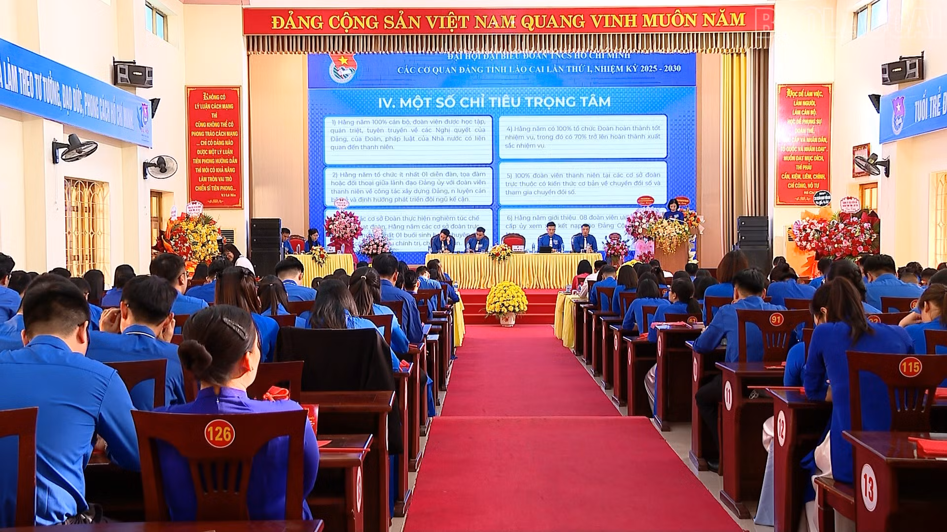Với khẩu hiệu “Đoàn kết, bản lĩnh, tri thức, sáng tạo, tiên phong”, Đoàn TNCS Hồ Chí Minh các cơ quan Đảng tỉnh Lào Cai nhiệm kỳ 2025 - 2030 đề ra 10 mục tiêu và 2 nhiệm vụ đột phá nhằm góp phần thực hiện thắng lợi nhiệm vụ chính trị của các cơ quan Đảng tỉnh, xây dựng tổ chức đảng, cơ quan, đơn vị trong sạch, vững mạnh, đáp ứng yêu cầu trong tình hình mới. Trong đó, phấn đấu có ít nhất 40 công trình, phần việc thanh niên cấp cơ sở; 100% đoàn viên thanh niên tại các cơ sở đoàn trực thuộc có kiến thức cơ bản về chuyển đổi số và tham gia chuyển đổi số; 100% cán bộ, đoàn viên là công dân số. Hằng năm có ít nhất 10 sáng kiến, giải pháp, đề tài nghiên cứu khoa học do thanh niên xây dựng được các cơ quan, đơn vị công nhận và ứng dụng; mỗi năm giới thiệu 8 đoàn viên ưu tú đề nghị cấp ủy xem xét, kết nạp vào Đảng Cộng sản Việt Nam.