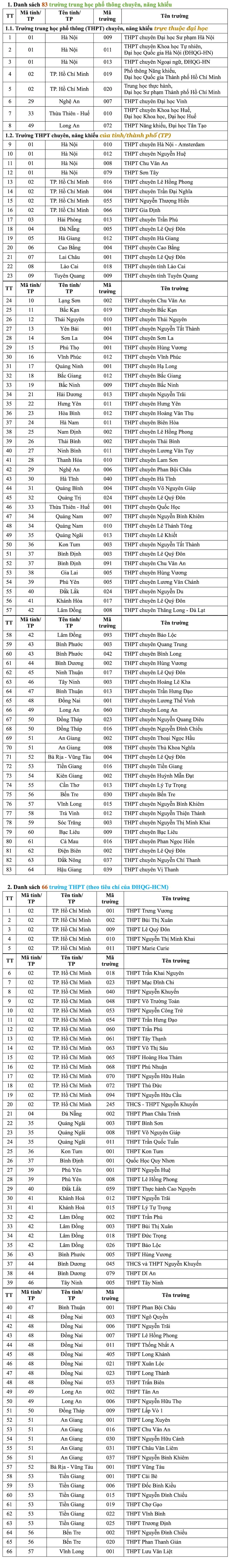 Trong 149 trường THPT trong cả nước có 83 trường THPT chuyên, năng khiếu và 66 trường THPT bổ sung theo tiêu chí của ĐH Quốc gia TPHCM.