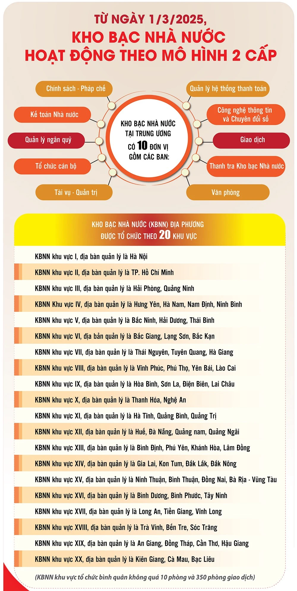 Kho bạc Nhà nước địa phương được tổ chức theo 20 khu vực.