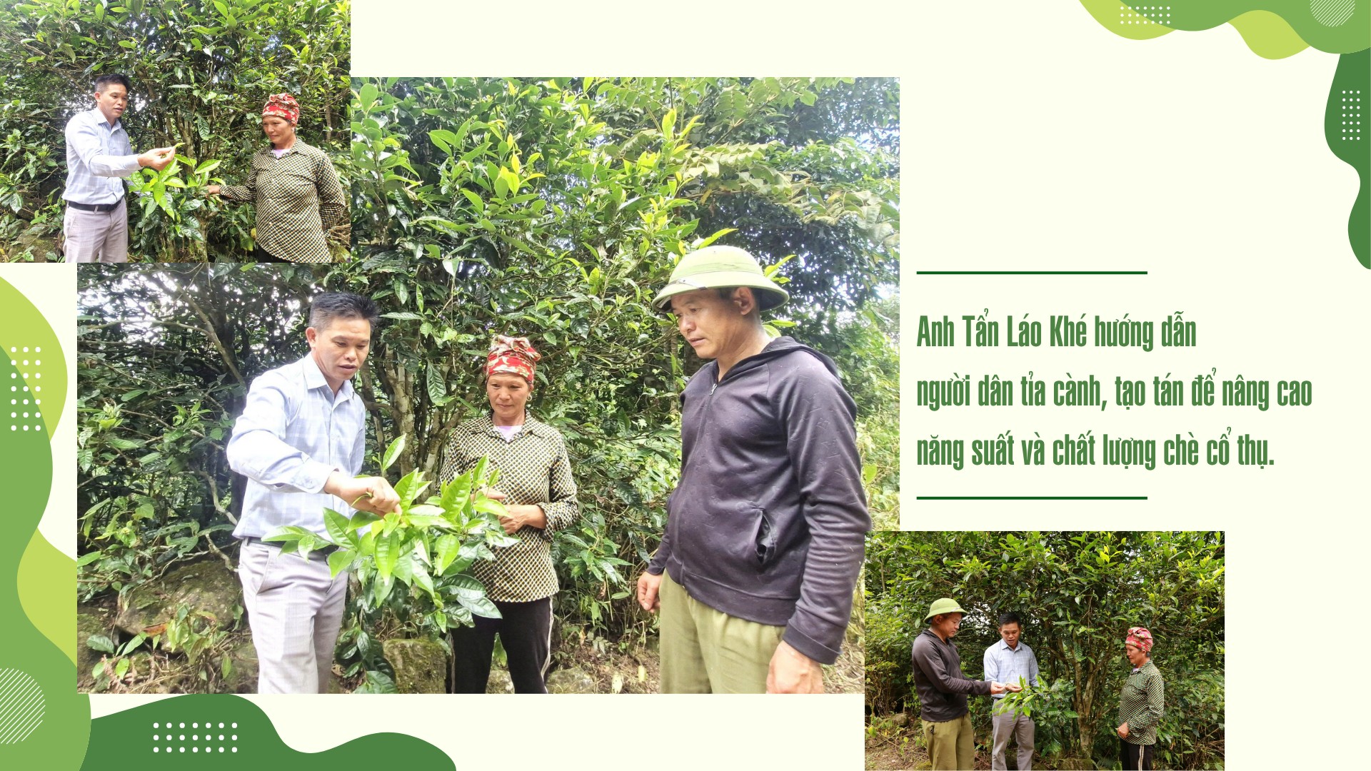 Quả thực, với tinh thần ham học hỏi và sự quyết tâm, cộng thêm động lực từ khát vọng giúp người dân quê mình có cuộc sống tốt hơn từ cây chè cổ thụ, Trưởng thôn Tẩn Láo Khé đã một lần nữa “đánh thức” rừng chè cổ thụ.