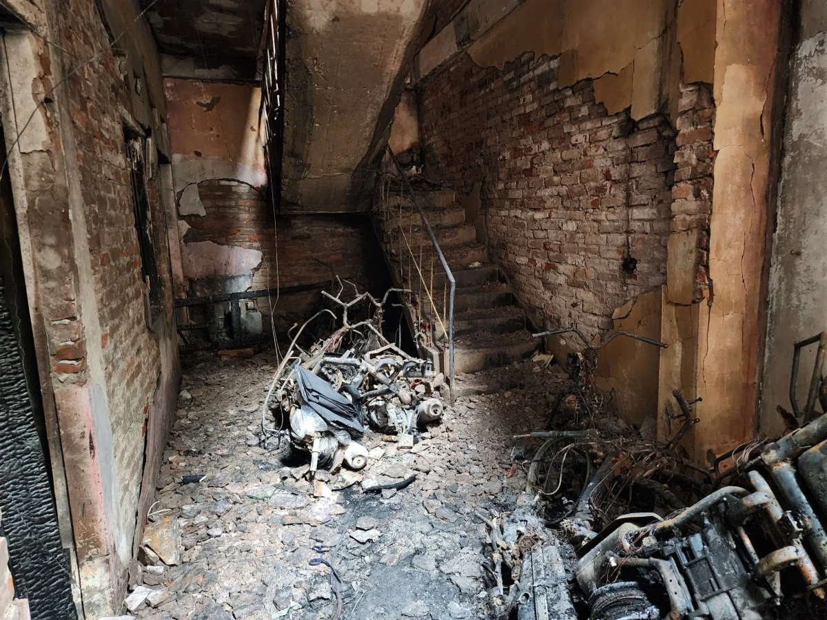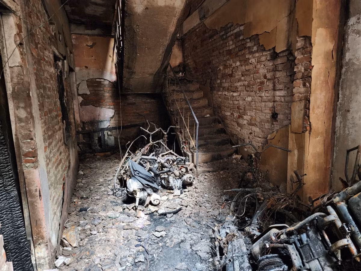 Ngôi nhà xảy ra cháy quy mô gồm 1 nhà 2 tầng, 1 tum bố trí sân phơi thoáng và 1 dãy nhà 3 tầng, mỗi tầng 4 phòng, hành lang hở phía trước. Nhà được xây dựng với diện tích khoảng 150m2 trên tổng diện tích khu đất xây dựng là 205m2, phần diện tích còn lại khoảng 55m2 là sân trống bố trí để xe máy, xe đạp, xe đạp điện.