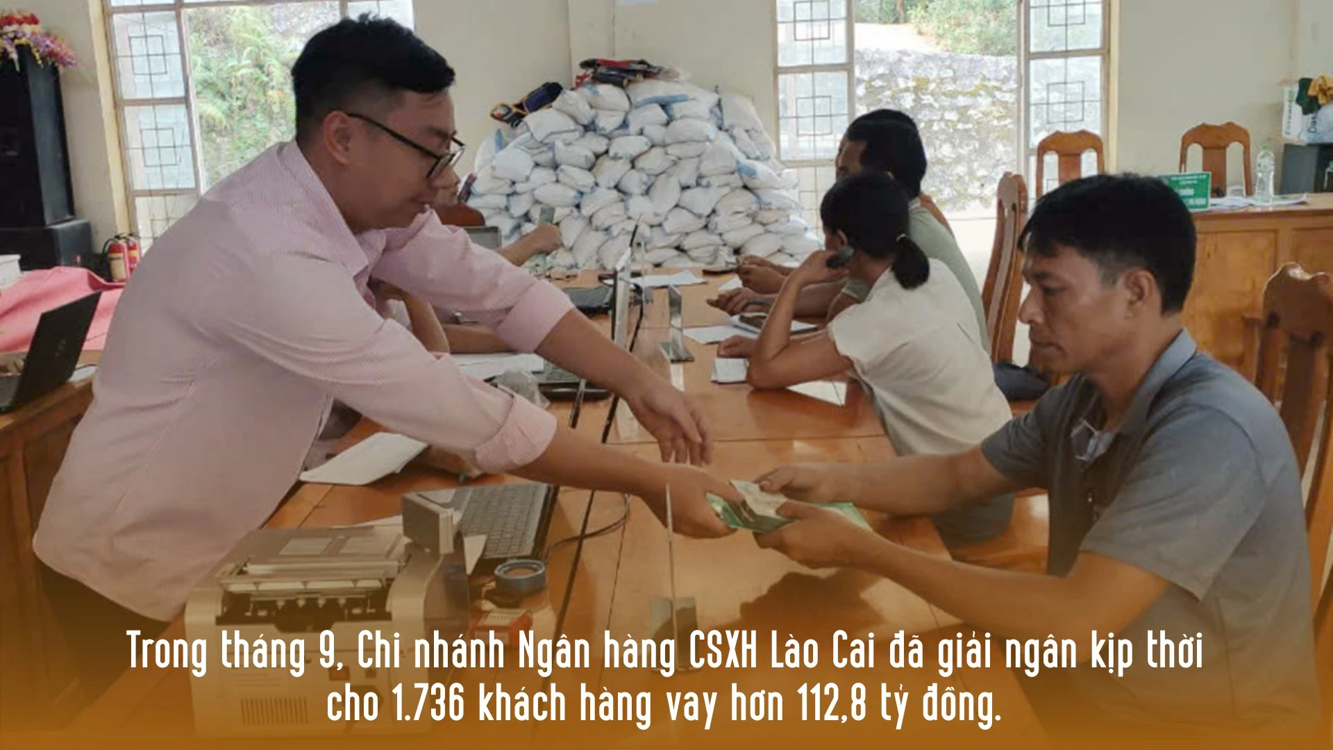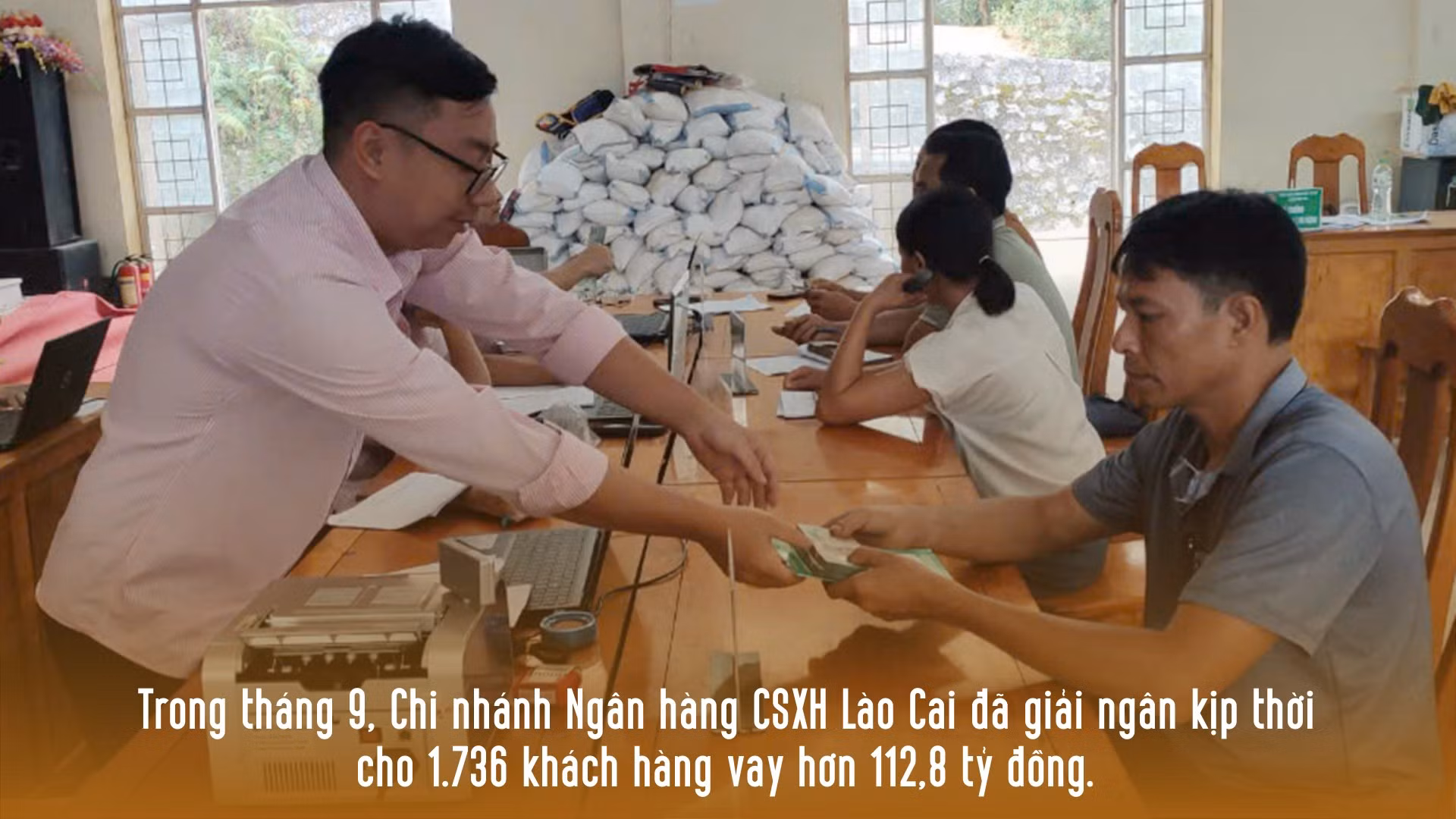 Thực hiện Nghị quyết số 143/NQ-CP ngày 17/9/2024 của Chính phủ về các nhiệm vụ, giải pháp trọng tâm để khẩn trương khắc phục hậu quả bão số 3 (Yagi), nhanh chóng ổn định tình hình Nhân dân, đẩy mạnh khôi phục sản xuất - kinh doanh, tích cực thúc đẩy tăng trưởng kinh tế, kiểm soát tốt lạm phát; trong tháng 9, từ nguồn vốn Trung ương và địa phương, Chi nhánh Ngân hàng CSXH tỉnh Lào Cai đã giải ngân kịp thời cho 1.736 khách hàng vay hơn 112,8 tỷ đồng, trong đó có nhiều khách hàng bị thiệt hại bởi hoàn lưu bão số 3 vay vốn để phục hồi sản xuất, kinh doanh.