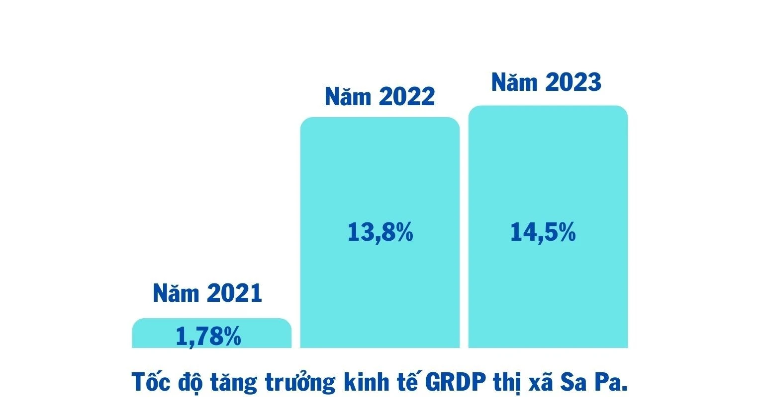 Tốc độ tăng trưởng kinh tế GRDP của thị xã Sa Pa duy trì ở mức năm sau cao hơn năm trước, lần lượt qua các năm 2021, 2022, 2023 là 1,78% - 13,8% - 14,5% và ước thực hiện đến nay đạt 100% Nghị quyết Đại hội Đảng bộ thị xã lần thứ XXIII và 96,6% Nghị quyết 18 đề ra.