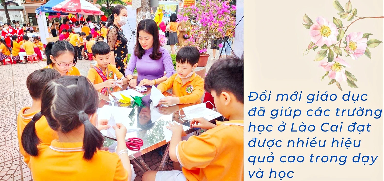 Cùng với đó, việc triển khai phương pháp nghiên cứu khoa học và dạy học qua trải nghiệm được triển khai mạnh; các “lớp học không biên giới” được nhân rộng; học sinh người dân tộc thiểu số được tạo điều kiện tham gia nhiều hoạt động, cuộc thi, hội thi, thể hiện năng khiếu, giao lưu, học hỏi. Tính đến hết năm 2021, Lào Cai có hơn 2.000 học sinh tiểu học, hơn 1.000 học sinh trung học đoạt giải thi học sinh giỏi cấp quốc gia và nghiên cứu khoa học, nhiều học sinh nhận học bổng của các trường đại học danh tiếng của quốc tế, có em đoạt giải tại Hội thi Khoa học - kỹ thuật quốc tế Intel ISEF… minh chứng cho khả năng vươn tầm quốc tế của học sinh Lào Cai, hướng tới mục tiêu trở thành những công dân toàn cầu.