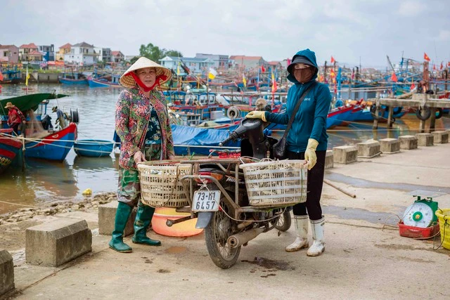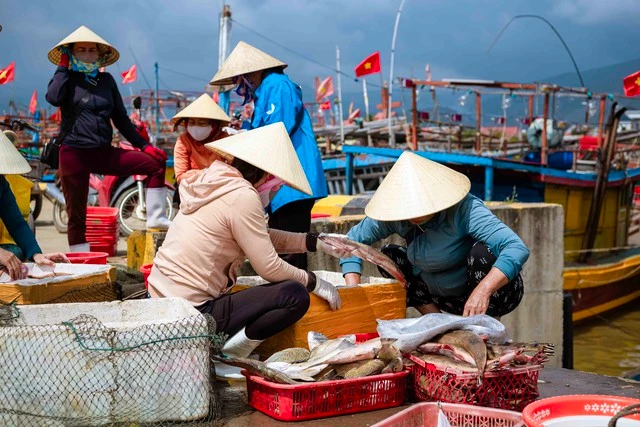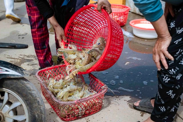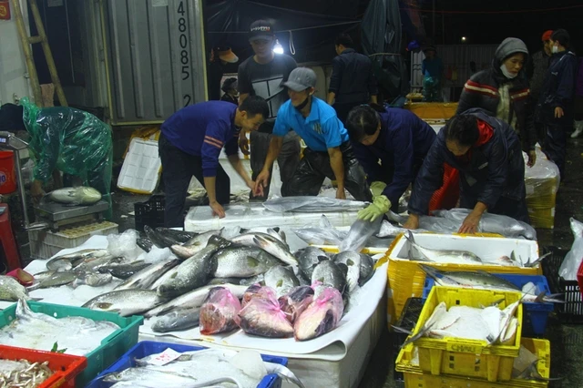 Hải sản cập bến, thương lái đến thu mua và cung cấp ra thị trường