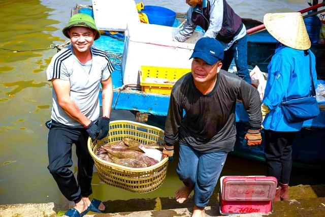 Ngư dân phấn khởi mang về đầy ắp cá, tôm sau chuyến đánh bắt gần bờ - Ảnh Hoàng Phúc