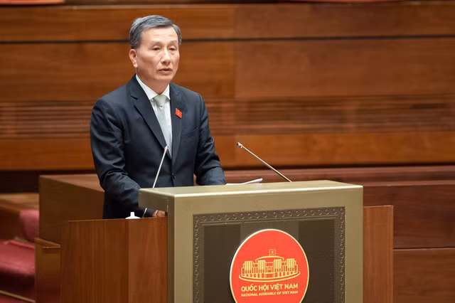 Chủ nhiệm Ủy ban Khoa học, Công nghệ và Môi trường Lê Quang Huy báo cáo giải trình, tiếp thu, chỉnh lý dự thảo Luật Giao dịch điện tử (sửa đổi)