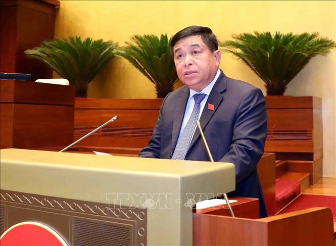 Thừa ủy quyền của Thủ tướng Chính phủ, Bộ trưởng Bộ Kế hoạch và Đầu tư Nguyễn Chí Dũng trình bày Báo cáo đánh giá giữa nhiệm kỳ thực hiện Kế hoạch phát triển kinh tế - xã hội 5 năm 2021-2025 và Kế hoạch cơ cấu lại nền kinh tế giai đoạn 2021 - 2025.