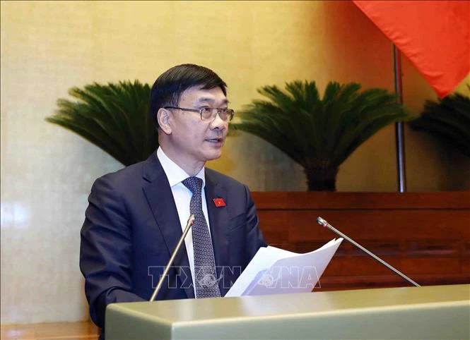 Chủ nhiệm Ủy ban Kinh tế của Quốc hội Vũ Hồng Thanh trình bày Báo cáo thẩm tra đánh giá giữa nhiệm kỳ thực hiện Kế hoạch phát triển kinh tế - xã hội 5 năm 2021 - 2025 và Kế hoạch cơ cấu lại nền kinh tế giai đoạn 2021 - 2025.