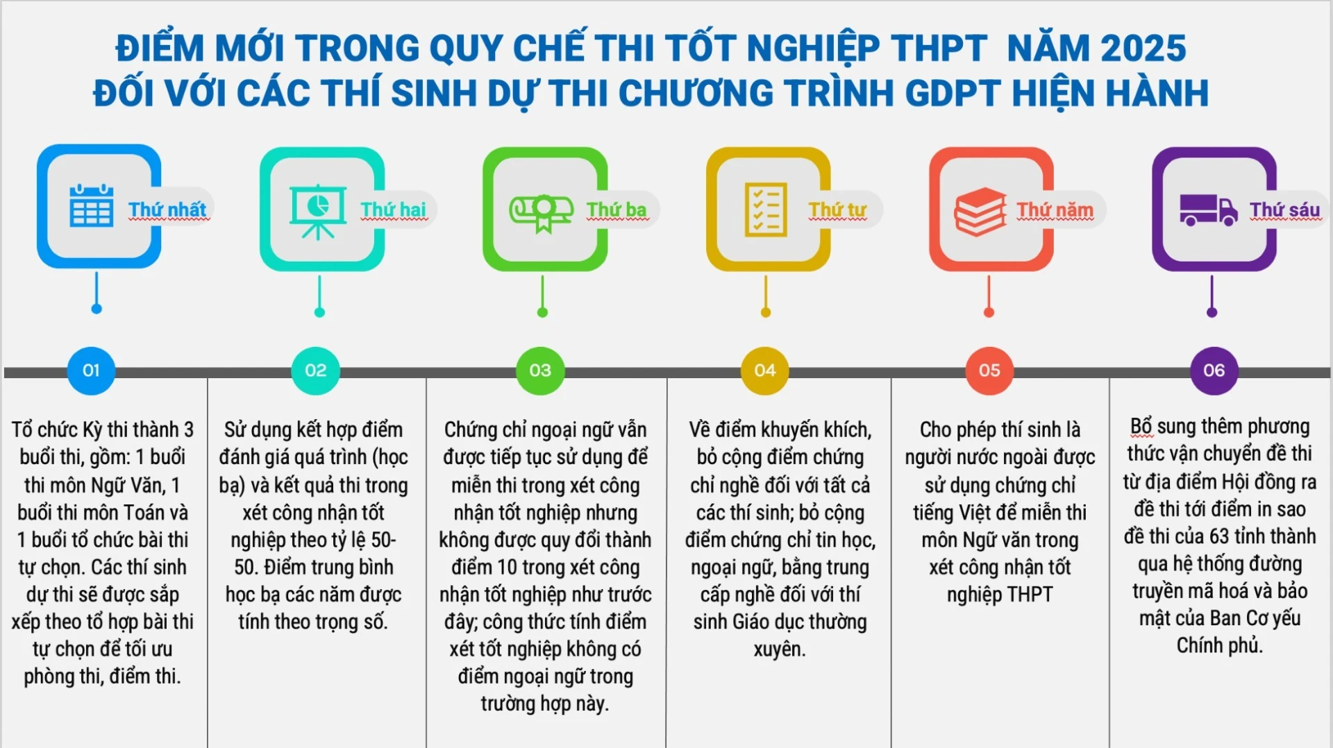 Tại Kỳ thi tốt nghiệp trung học phổ thông (THPT) năm 2025, có một số điểm mới trong quy chế thi, áp dụng với thí sinh theo chương trình giáo dục phổ thông hiện hành (chương trình giáo dục phổ thông 2018).