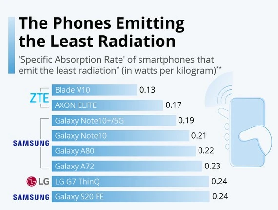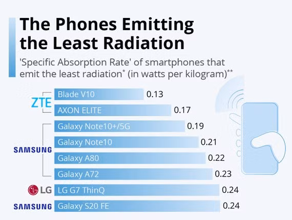 Các mẫu điện thoại phát ra ít nhất. Ảnh: Statista Còn iPhone thì sao?