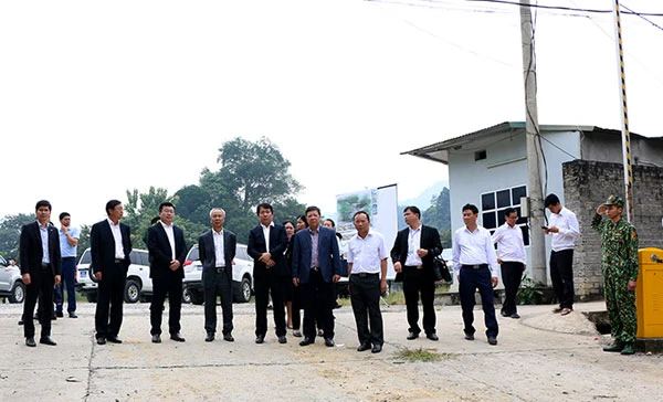Sáng cùng ngày, Đoàn công tác châu Hồng Hà cũng đến khảo sát khu dự kiến xây dựng cặp chợ biên giới tại khu vực Bản Quẩn, xã Bản Phiệt, huyện Bảo Thắng. (ảnh trên).