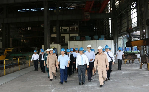 Trước đó, chiều 12/11, Đoàn công tác châu Hồng Hà đã tham quan, khảo sát tình hình sản xuất tại Nhà máy Gang thép Lào Cai (Công ty TNHH Khoáng sản và Luyện kim Việt Trung - VTM) thuộc Khu công nghiệp Tằng Loỏng, huyện Bảo Thắng. (ảnh trên).