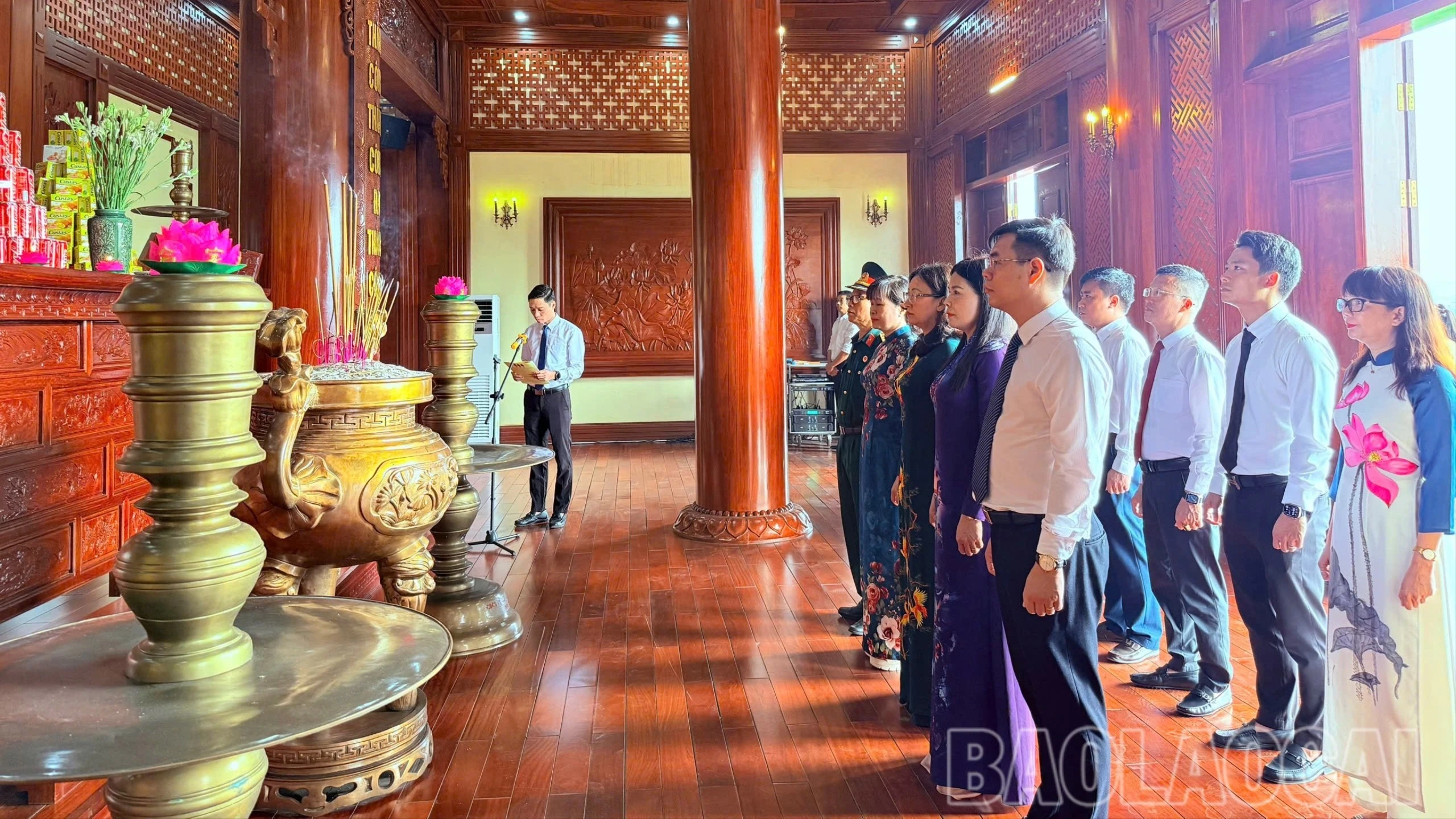 Các đại biểu tham dự Lễ dâng hương, báo công tại Nhà lưu niệm Chủ tịch Hồ Chí Minh.