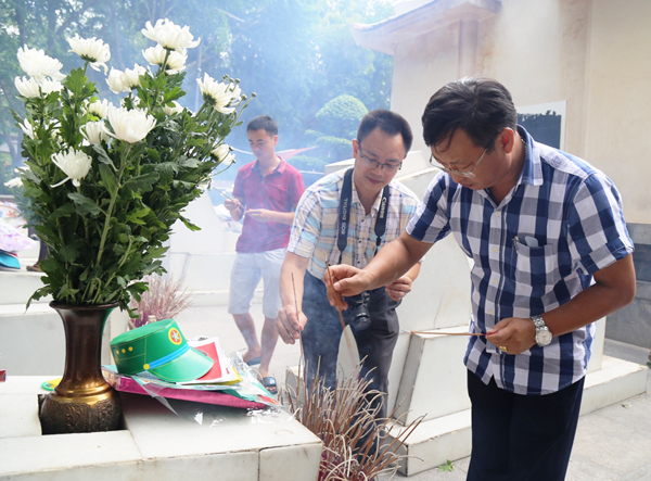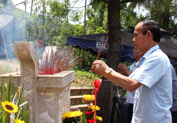 | Dâng hương tưởng nhớ các anh hùng liệt sỹ tại Nghĩa trang liệt sỹ quốc gia Trường Sơn. |