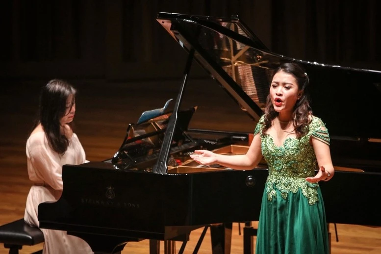 Đoàn Việt Nam gồm các sinh viên đại học khoa thanh nhạc – Học viện Âm nhạc Quốc gia và các em học sinh bộ môn Piano.