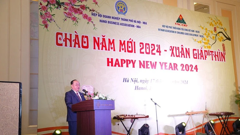 Tối 17/1, tại Hà Nội, Hiệp hội Phát triển hàng tiêu dùng Việt Nam (VACOD) phối hợp Hiệp hội Doanh nghiệp thành phố Hà Nội (HBA) tổ chức “Chương trình gặp mặt đối ngoại chào năm mới 2024 - Xuân Giáp Thìn”.