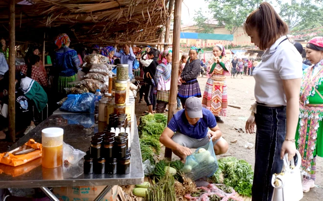 Phiên chợ mang đậm bản sắc văn hóa của người Mông Nà Hẩu.
