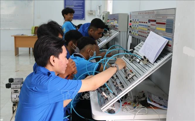 Sinh viên học nghề điện tại Trường Cao đẳng nghề Ninh Thuận. Ảnh: TTXVN phát
