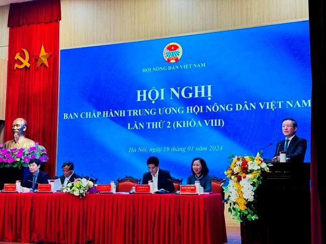 Phát biểu tại Hội nghị lần thứ 2, Ban Chấp hành Trung ương Hội NDVN (khoá VIII) diễn ra sáng 19/1 ngay trụ sở Trung ương Hội, Chủ tịch Lương Quốc Đoàn nêu rõ: Năm 2023, kết quả công tác Hội và phong trào nông dân đã trực tiếp góp phần vào tăng trưởng của ngành nông nghiệp và đất nước, tạo sinh kế, việc làm và thu nhập ổn định cho người nông dân. Công tác xây dựng tổ chức Hội được chú trọng, củng cố; chất lượng hội viên, chất lượng sinh hoạt của các chi, tổ Hội được nâng lên theo hướng thiết thực, hiệu quả gắn các hoạt động dịch vụ, tư vấn, dạy nghề và hỗ trợ nông dân. Các phong trào thi đua do Hội phát động, nhất là Phong trào nông dân thi đua sản xuất, kinh doanh giỏi, đoàn kết giúp nhau làm giàu và giảm nghèo bền vững tiếp tục phát triển sâu rộng và nâng cao về chất lượng, có sức lan tỏa, lôi cuốn hội viên, nông dân tham gia; nông dân sản xuất kinh doanh giỏi các cấp đóng vai trò hạt nhân trong phát triển nông nghiệp, xây dựng nông thôn mới, là nhân tố quan trọng giúp ngành nông nghiệp tăng trưởng ổn định. Các cấp Hội tích cực phối hợp với doanh nghiệp cung ứng giống, vật tư, máy nông nghiệp cho nông dân; tăng cường hỗ trợ, hướng dẫn nông dân đưa các sản phẩm nông sản lên sàn thương mại điện tử; tổ chức nhiều hoạt động thiết thực chăm lo, đồng hành, đảm bảo an sinh xã hội cho đối tượng gia đình chính sách, hộ nông dân nghèo, đồng bào ở các xã vùng sâu, vùng xa, thôn, bản biên giới, nông dân bị thiệt hại do thiên tai, dịch bệnh.