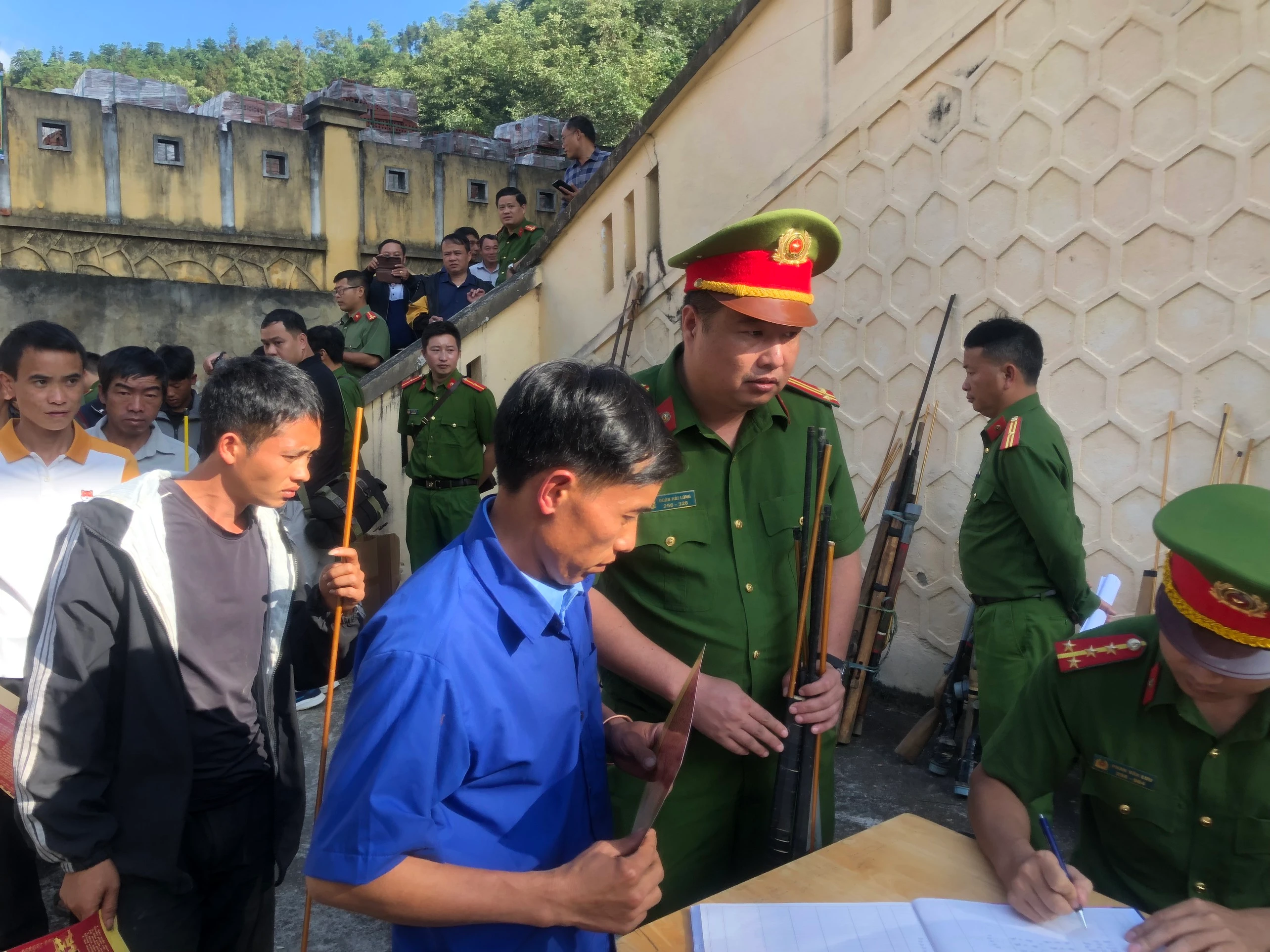 Ngoài tuyên truyền rộng rãi, với phương pháp “đi từng ngõ, gõ từng nhà, rà từng đối tượng”, lực lượng công an tiến hành rà soát, lập danh sách các hộ gia đình, các đối tượng có liên quan đến sử dụng vũ khí, vật liệu nổ, công cụ hỗ trợ; tranh thủ sự ủng hộ của già làng, trưởng bản, trưởng dòng họ, người có uy tín để tuyên truyền vận động cá biệt, giúp gia đình, cá nhân đó hiểu về sự nguy hại, vi phạm pháp luật khi sử dụng súng tự chế, để từ đó họ tự giác giao nộp những vũ khí tự chế của mình còn cất giấu cho cơ quan chức năng.