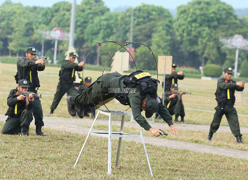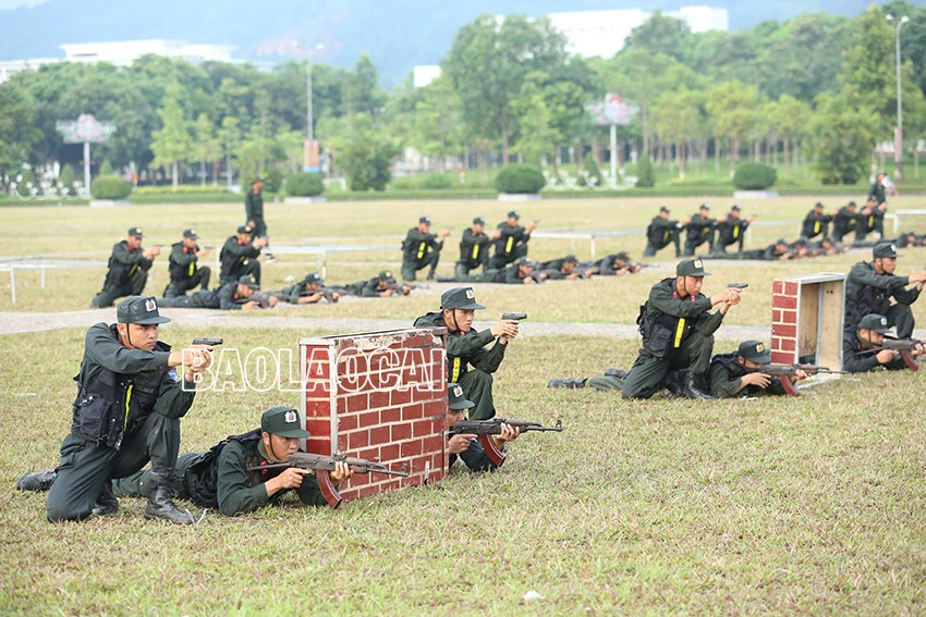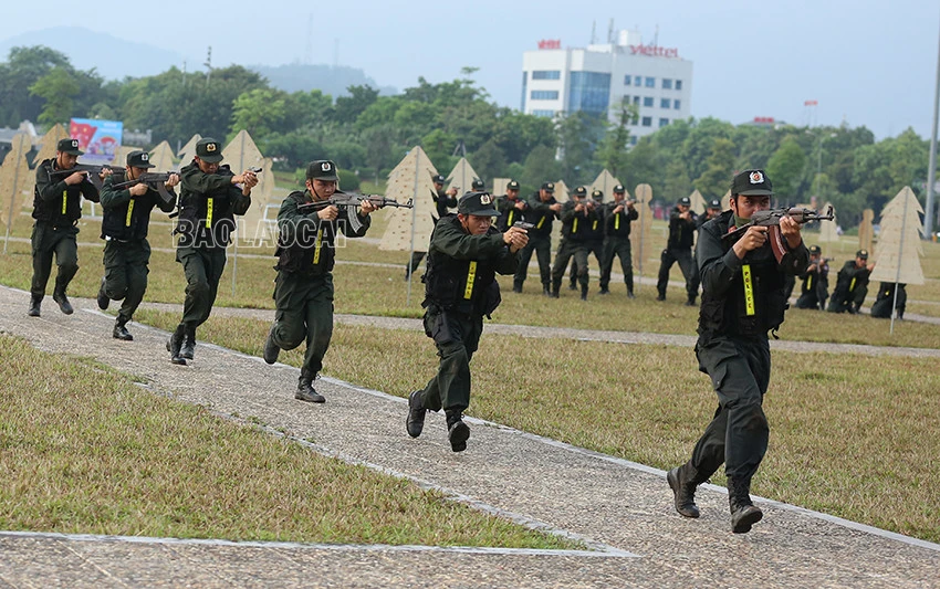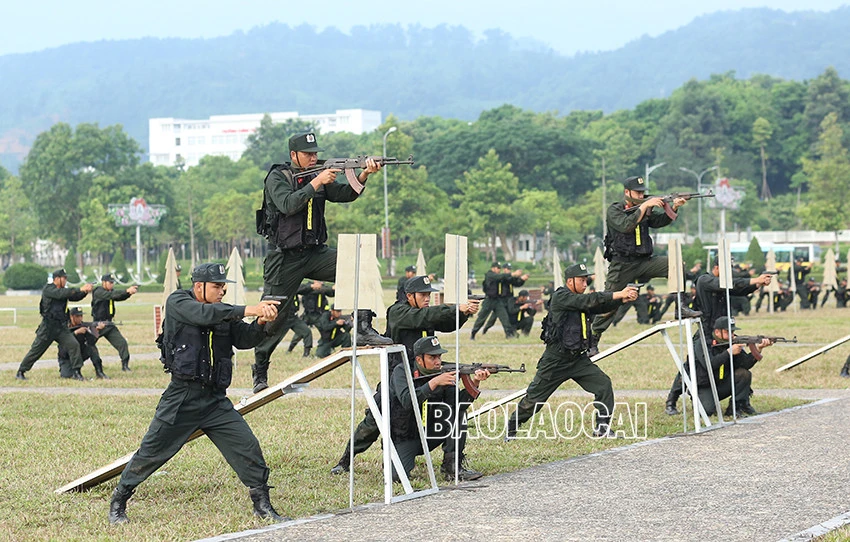 Tiểu đoàn Cảnh sát cơ động số 4 (Trung đoàn Cảnh sát cơ động Tây Bắc, Bộ Tư lệnh Cảnh sát cơ động) tham gia chương trình khai mạc tại chung kết Hội thi “Điều lệnh, quân sự, võ thuật” tổ chức tại Lào Cai, với nội dung khối kỹ thuật vận động cơ bản, vượt các loại vật cản kết hợp bắn súng ứng dụng và đánh bắt các đối tượng, tiêu diệt các mục tiêu của tình huống.