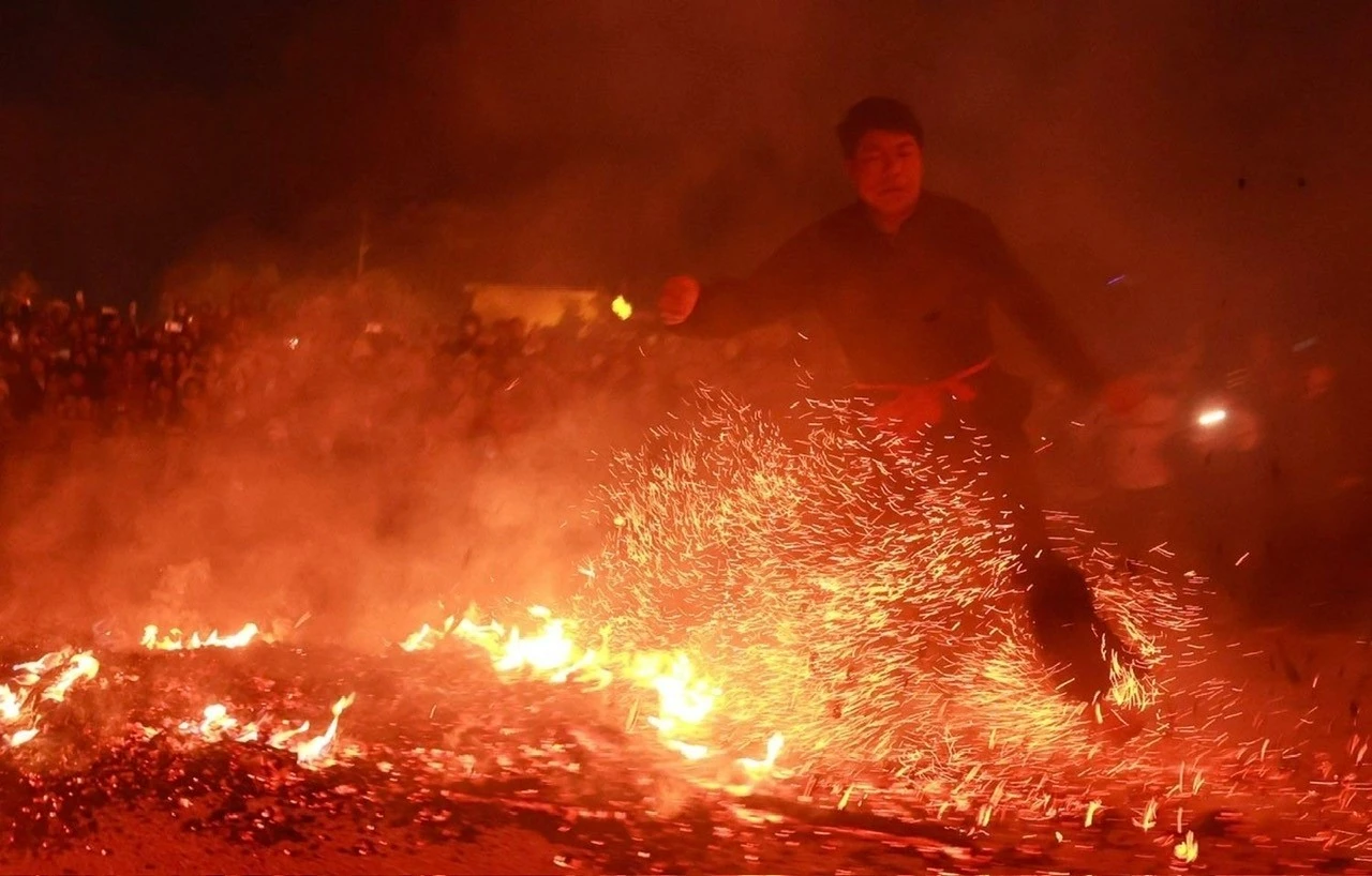 Một trong những trải nghiệm độc đáo khác không thể bỏ qua tại lễ hội Pút Tồng chính là nghi thức "tắm than" của các đàn ông dân tộc Dao Đỏ. Nghi thức bắt đầu khi thầy Mo làm lễ cầu khấn các vị thần linh của trời, đất, núi, sông bảo hộ cho những người tham gia. Sau đó, ngọn lửa được châm lên, khi củi lửa than hồng bùng cháy dữ dội, các thanh niên trong bản sẽ hòa mình vào điệu múa, nhảy lửa trong tiếng trống chiêng thúc giục, tạo nên một màn trình diễn đầy sức mạnh và kịch tính. Nghi thức này không chỉ là biểu tượng của sự thanh tẩy, mà còn thể hiện niềm tin vào sức mạnh của thần linh, giúp người dân vượt qua khó khăn, đón nhận sự bình an và may mắn trong năm mới.