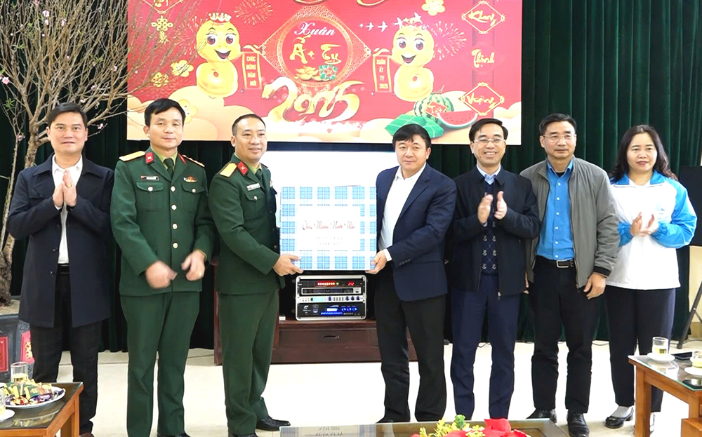 Chúc tết và tặng quà cán bộ, chiến sỹ Ban Chỉ huy Quân sự thị xã.