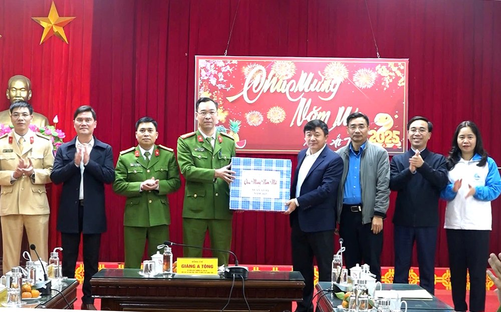 Đồng chí Giàng A Tông - Ủy viên Ban Thường vụ Tỉnh ủy, Chủ tịch Ủy ban MTTQ tỉnh chúc tết và tặng quà cho cán bộ, chiến sỹ Công an thị xã Nghĩa Lộ.