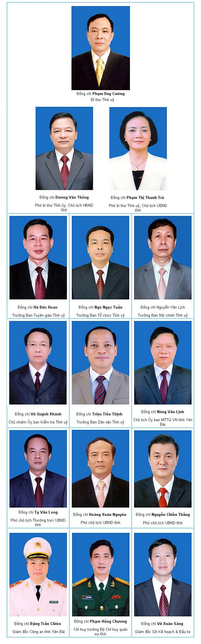 DANH SÁCH 15 ĐỒNG CHÍ TRONG BAN THƯỜNG VỤ TỈNH ỦY YÊN BÁI KHÓA XVIII