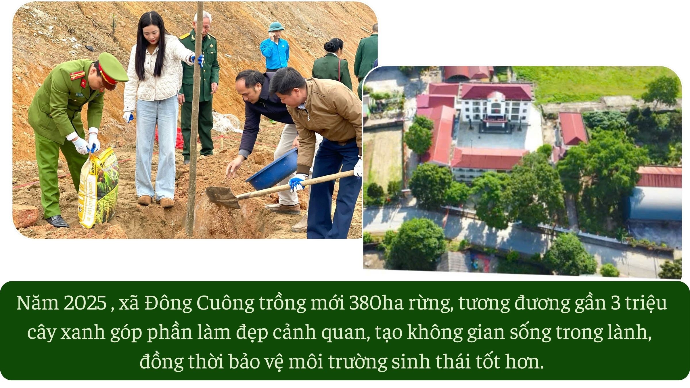 Năm 2025 vừa qua, xã Đông Cuông đã trồng mới 380ha rừng, tương đương gần 3 triệu cây xanh góp phần làm đẹp cảnh quan, tạo không gian sống trong lành, đồng thời bảo vệ môi trường sinh thái. Song song với đó, xã thực hiện tốt việc quản lý, bảo vệ diện tích rừng hiện có. Các thôn đều xây dựng quy ước, hương ước về bảo vệ môi trường, coi đây là một trong những tiêu chí đánh giá gia đình văn hóa, thôn văn hóa hằng năm.