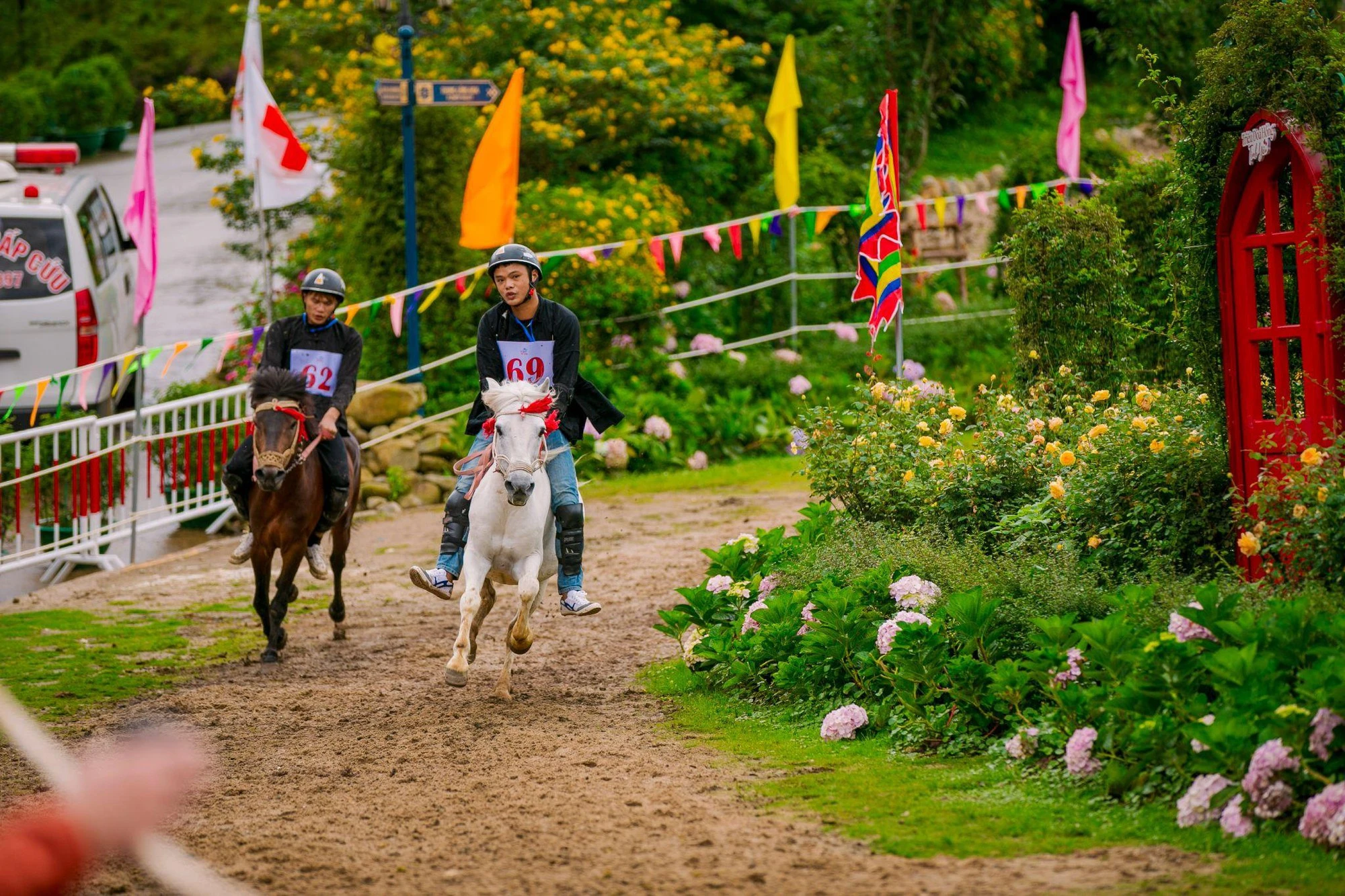 Mọi sự chú ý đổ dồn về đường đua dài khoảng 1.400m vòng quanh thung lũng hoa hồng rộng 50.000m2. Thung lũng của hàng trăm nghìn đóa hồng Sa Pa và các loại hoa từ Anh, Pháp, Nhật Bản, tạo nên khung cảnh thơ mộng dưới chân núi Fansipan. Tại đây, các nài ngựa xuất sắc nhất từ huyện Bắc Hà cùng nhau tranh tài, áp dụng thể thức đấu loại trực tiếp vô cùng cạnh tranh. Những pha tranh tài song mã, tam mã sát nút và những cú bứt tốc về đích đầy ngoạn mục khiến khán giả ồ lên trầm trồ và hào hứng cổ vũ liên tiếp.