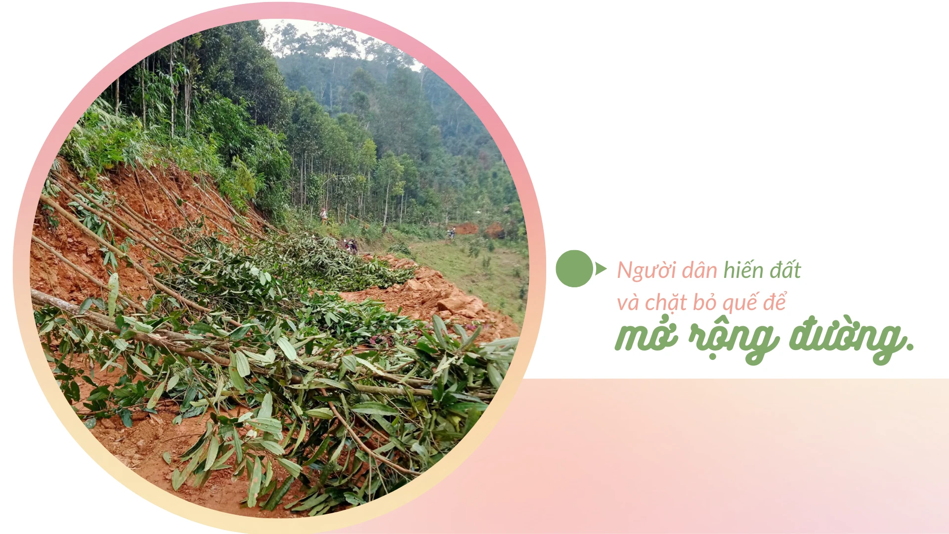 Không chỉ tuyến đường trục thôn, 4 tuyến đường nội đồng đi các khu sản xuất của bà con cũng đang được mở rộng. Trước đây, hầu hết các tuyến đường này là đường nhỏ, chỉ vừa đủ để đi xe máy, ô tô không thể vào tận nương đồi của bà con được. Do đó, việc vận chuyển cây giống, phân bón và đặc biệt là việc thu hoạch vỏ quế, cành lá quế gặp nhiều khó khăn. Chi phí vận chuyển vì thế cũng tăng.