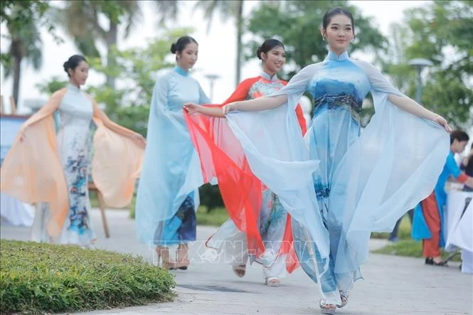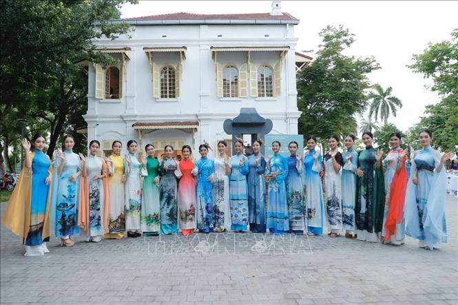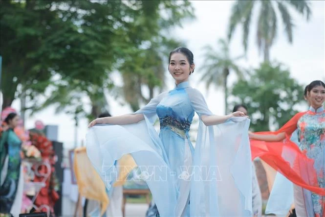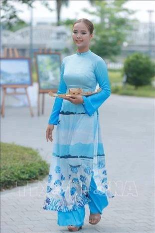 Phần trình diễn áo dài của NTK Viết Bảo góp phần quảng bá vẻ đẹp thiên nhiên, thắng cảnh Huế.