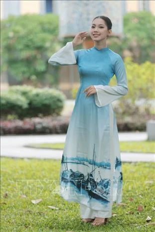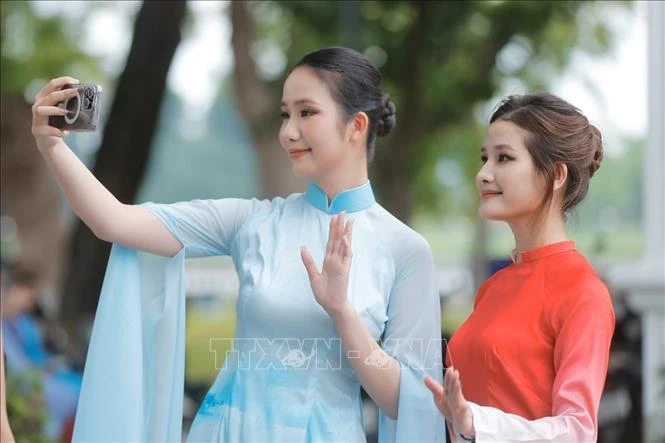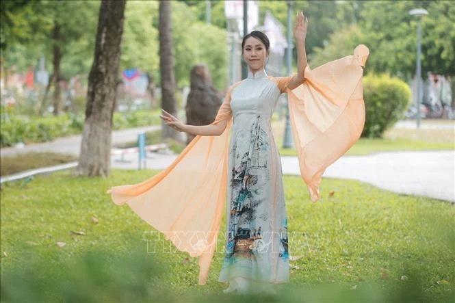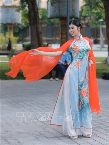 Thiếu nữ duyên dáng bên tà áo dài Việt Nam.