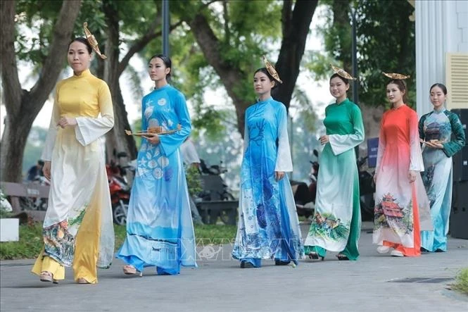Bộ sưu tập áo dài của NTK Viết Bảo có sự kết hợp, sử dụng một số tác phẩm ký họa về Phú Lộc làm nền, góp phần bảo tồn, quảng bá, phát huy nét đẹp trang phục áo dài truyền thống.