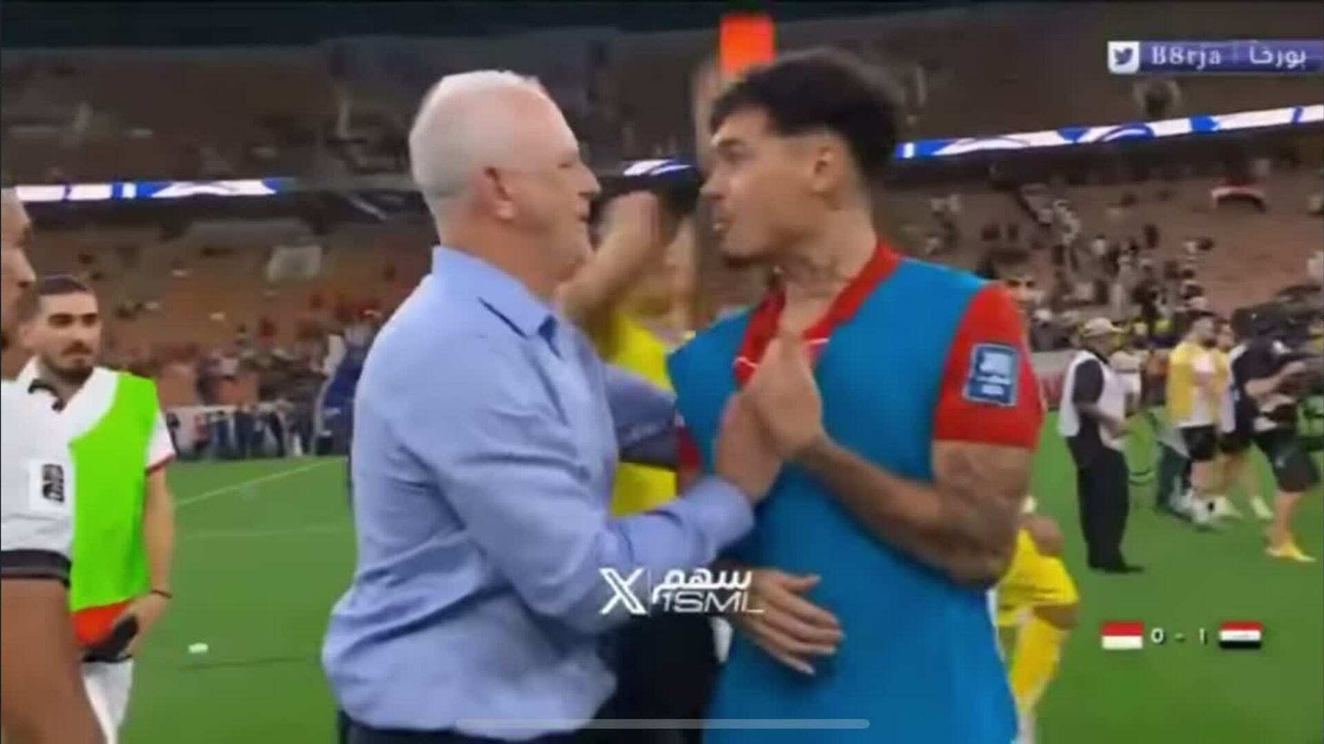 Phút 77, Kevin Diks chạm bóng trước, khiến Merchas Doski vung chân hết cỡ phá bóng hụt lại thành trúng người đối phương. Nhưng trọng tài Ma Ning cho rằng Diks phạm lỗi trước và cho Iraq đá phạt lên, khiến các cầu thủ Indonesia phản ứng dữ dội.