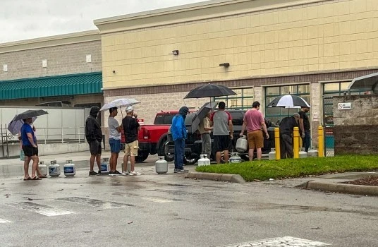 Người dân xếp hàng chờ mua nhiên liệu trước bão ở Mỹ. Ảnh: INT