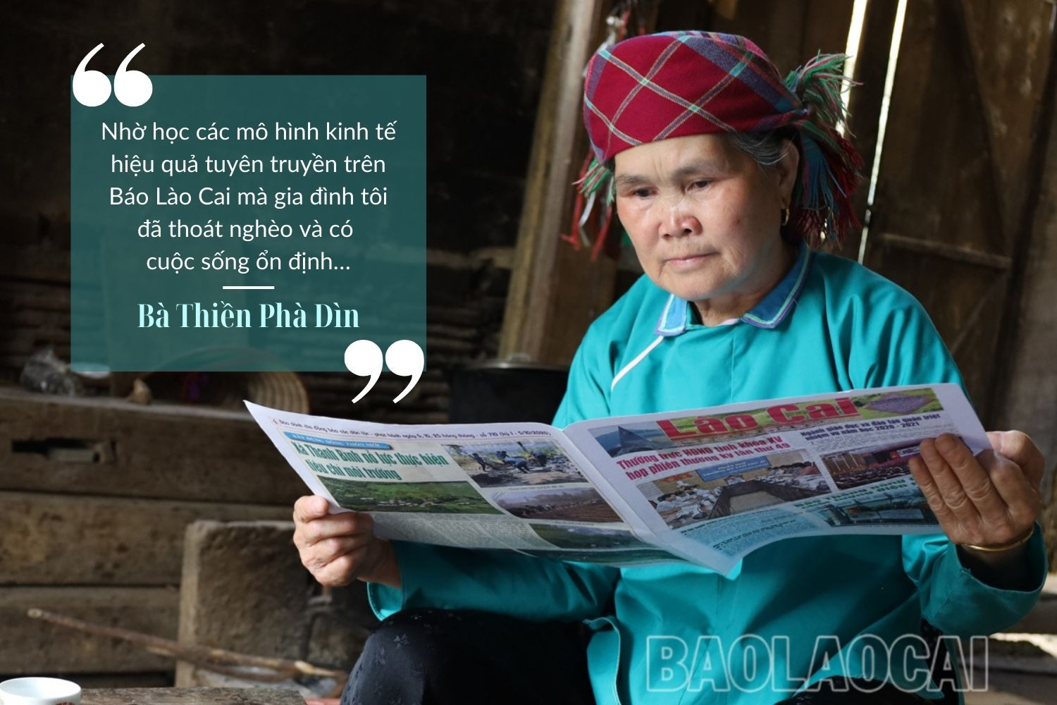 Nói về mối duyên với Báo Lào Cai, bà Thiền Phà Dìn, dân tộc Nùng ở thôn Nậm Pản, xã Thanh Bình (Mường Khương) tâm sự: Nhờ học các mô hình kinh tế hiệu quả tuyên truyền trên Báo Lào Cai mà gia đình tôi đã thoát nghèo và có cuộc sống ổn định…