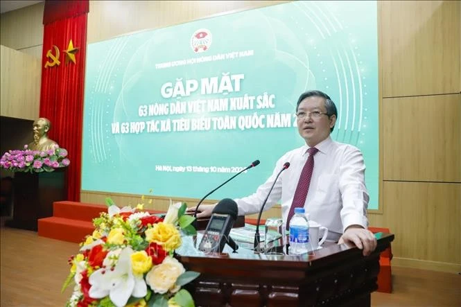 Chủ tịch Trung ương Hội Nông dân Việt Nam Lương Quốc Đoàn phát biểu tại buổi gặp mặt. Ảnh: TTXVN phát