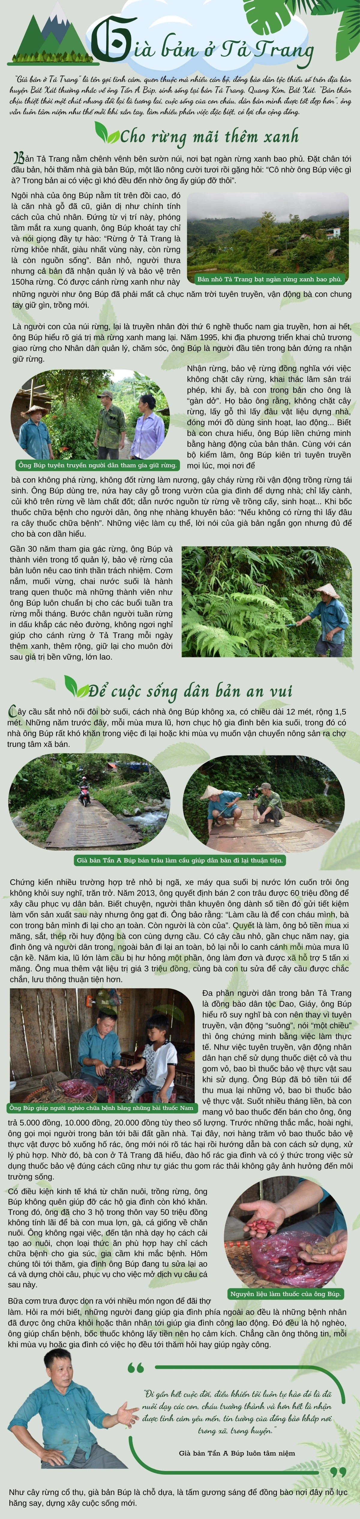 Ông là đảng viên Giàng Sáy Sinh, dù đã 94 tuổi nhưng đôi mắt vẫn còn sáng và dáng đi vững chãi. Nghe ông kể chuyện về những năm tháng hoạt động cách mạng, tôi hiểu ông đã đi qua những giông bão cuộc đời, gắn với chiều dài lịch sử đấu tranh của quê hương Mù Cang Chải. Giờ đây, khi đã ở tuổi xưa nay hiếm, ông sống chậm rãi, an yên bên vợ con và các cháu ở xã Púng Luông.